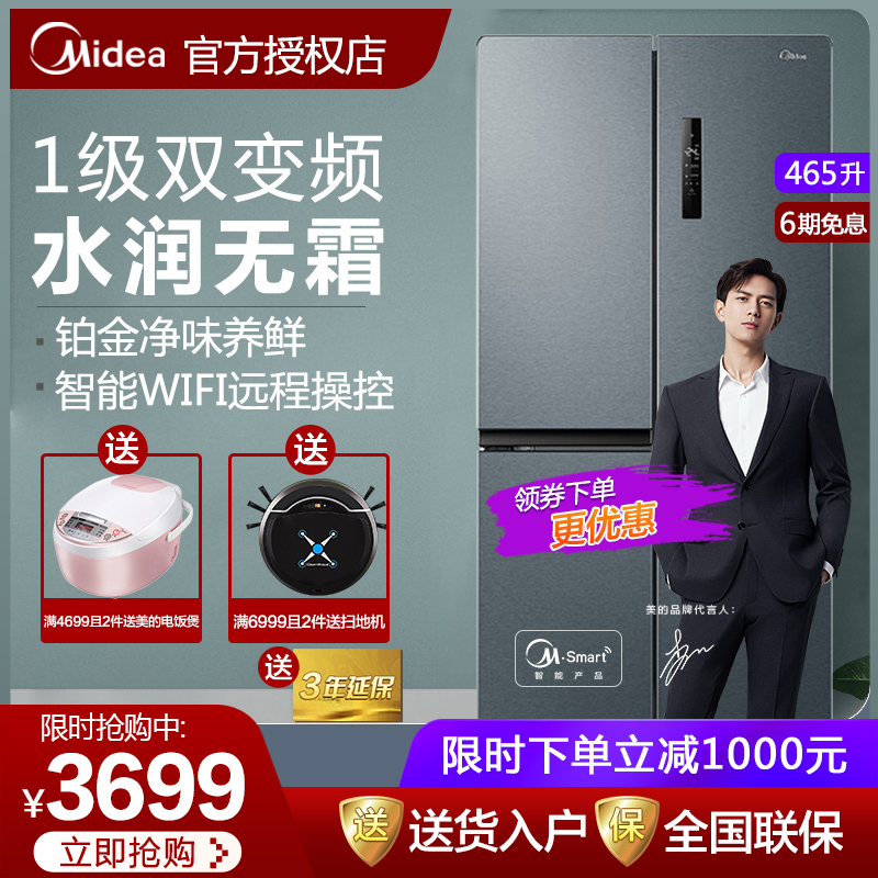 天猫券~美的冰箱家用十字四门对开门 一级变频节能无霜BCD-465WTPZM(E)~满减日更