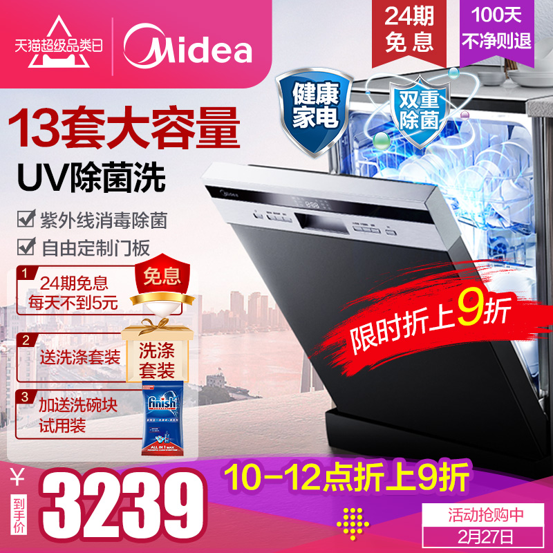 天猫券~Midea/美的L2智能全自动家用洗碗机UV除菌消毒烘存一体嵌入式13套~满减日更