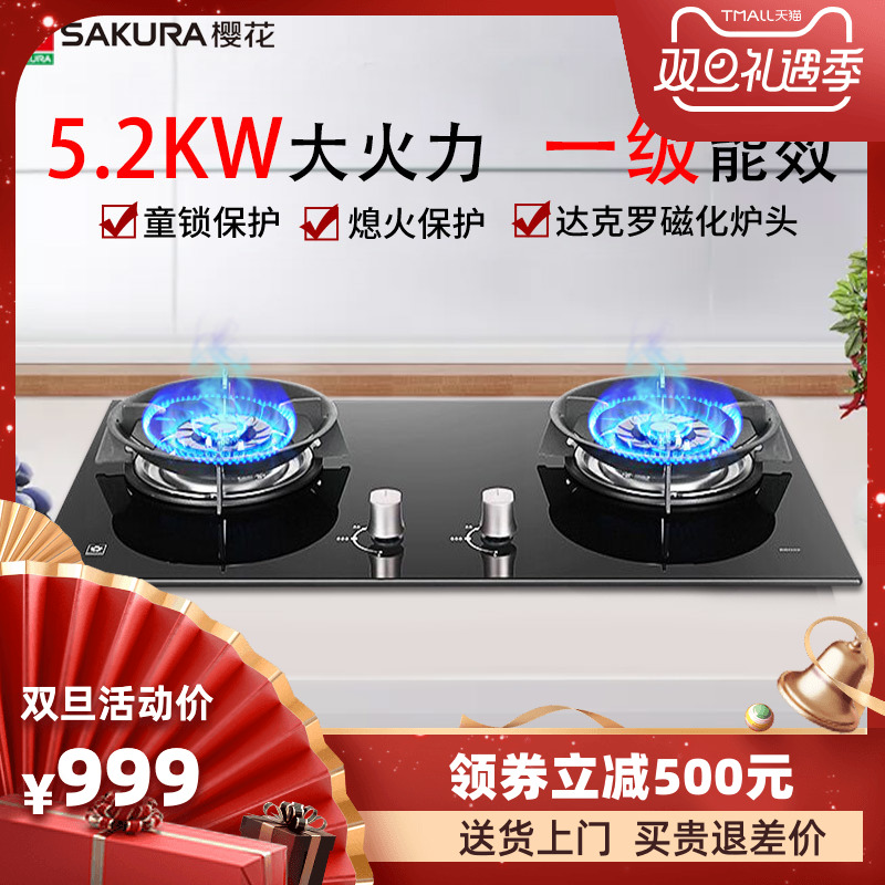 天猫券~樱花燃气灶煤气灶式炉灶双灶天然气液化气家用灶具猛火台嵌BBG02~满减日更