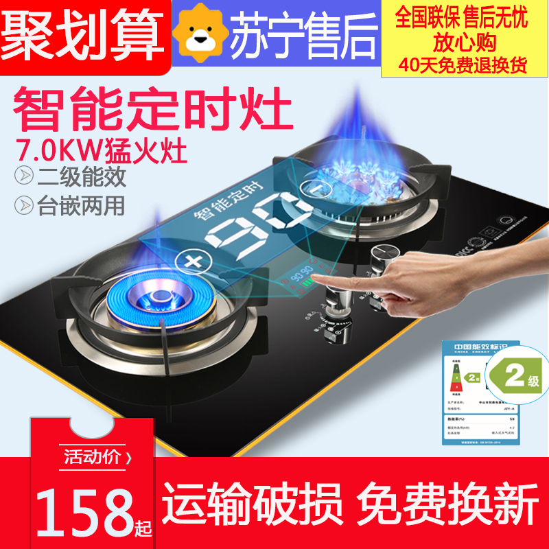 淘宝券~好太太定时煤气灶双灶家用燃气灶天然气液化气台式嵌入式猛火炉具~满减日更