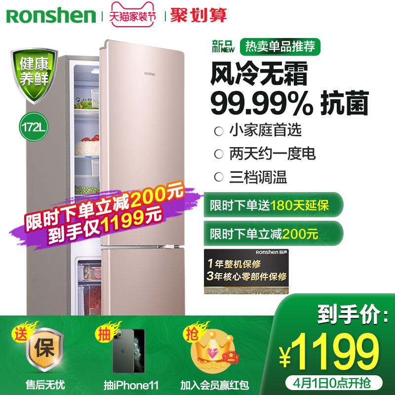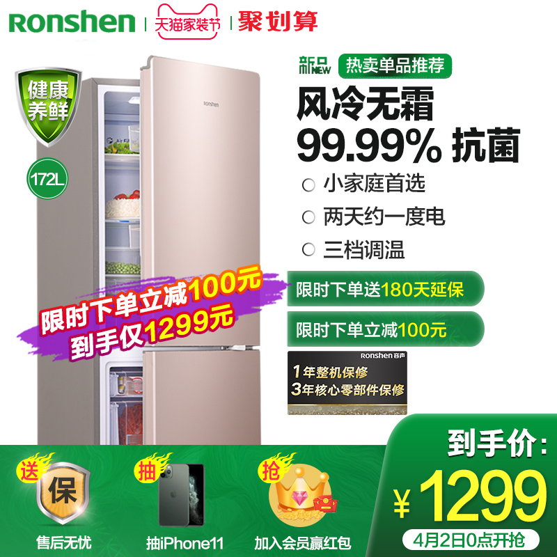 天猫券~Ronshen/容声 BCD-172WD11D两门双门冰箱家用风冷节能无霜~满减日更