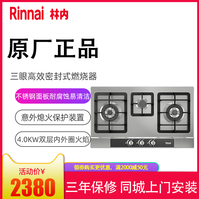 淘宝券~林内RB-3WA家用不锈钢天然气燃气灶嵌入式3眼三灶林内 JZT-2M2F~满减日更