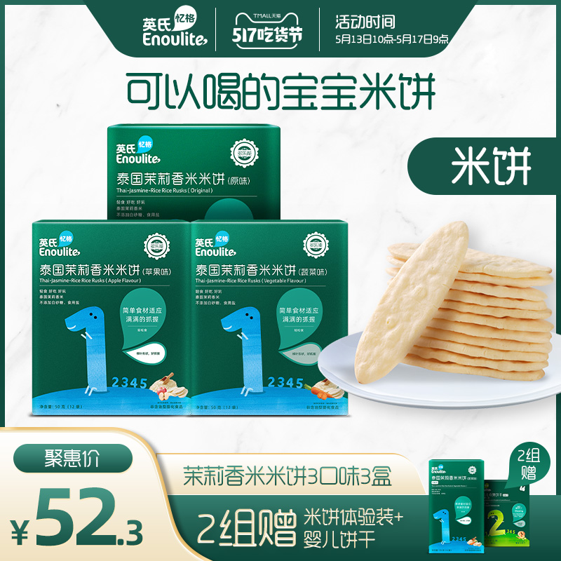 天猫券~英氏米饼3盒宝宝零食辅食 儿童添加小吃磨牙饼干 1组送婴儿辅食无~满减日更