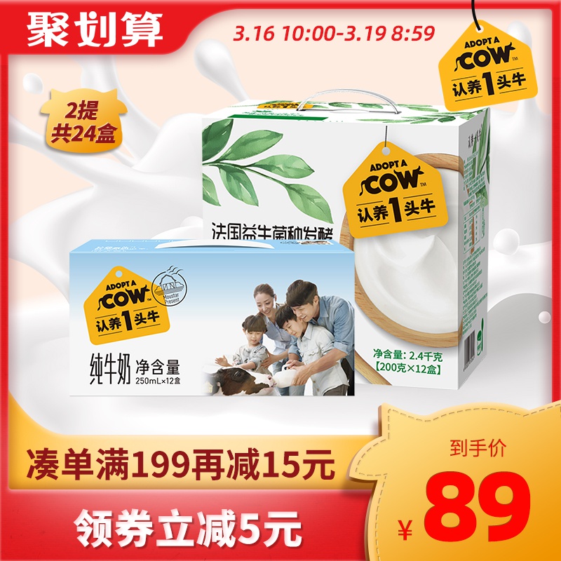 天猫券~【日期新鲜】认养一头牛纯牛奶12盒*1箱+酸奶12盒*1整箱早餐高钙B~满减日更