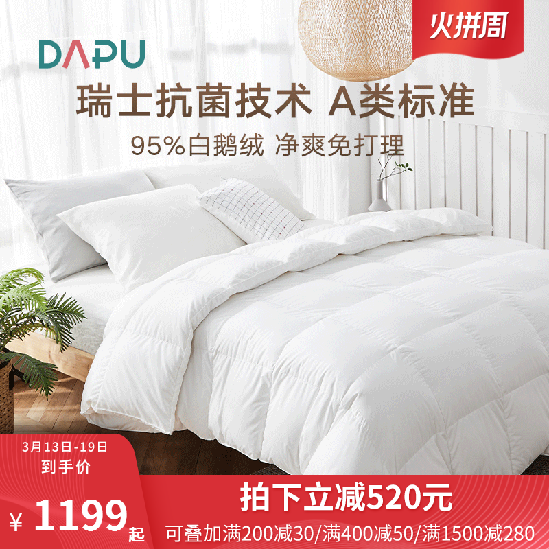 天猫券~大朴A类瑞士抗菌白鹅羽绒被芯加厚95鹅绒被净芯被厚保暖被子~满减日更