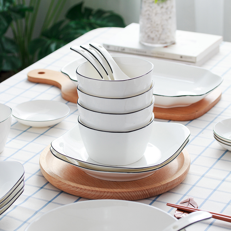 淘宝券~碗碟套装家用4人网红碗盘ins餐具简约陶瓷创意碗具北欧风方碗方盘~满减日更