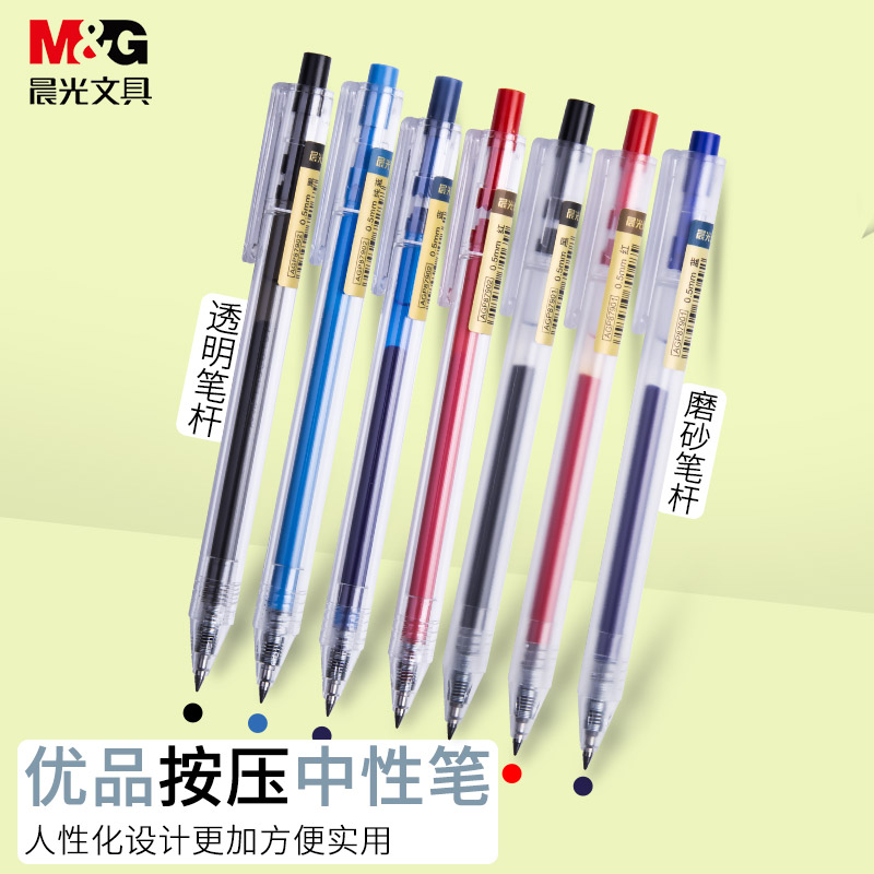 天猫券~晨光优品中性笔学生用AGP87901按动中性笔0.5 透明磨砂杆签字笔文具办公用品简约碳素黑红蓝色笔芯水性笔~满减日更