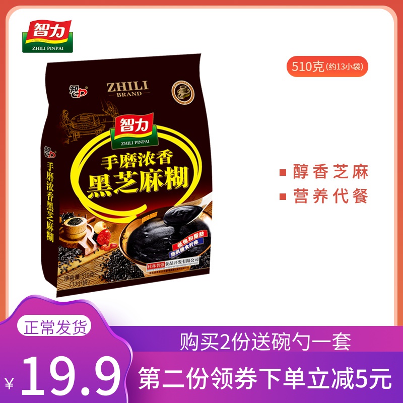 天猫券~智力黑芝麻糊手磨浓香即食冲饮冲调小袋装谷物五谷早餐代餐粉510g~满减日更