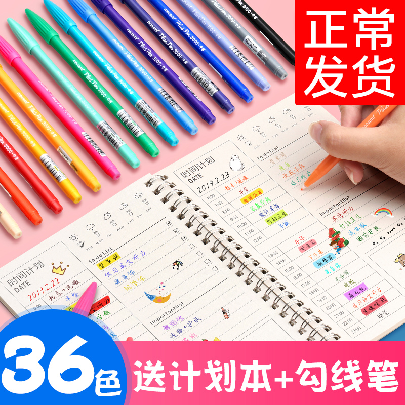 天猫券~慕娜美纤维笔中性笔彩色套装韩国monami文具水彩笔勾线笔彩色手帐笔大学生用慕那美少女心萌文具36色彩色笔~满减日更