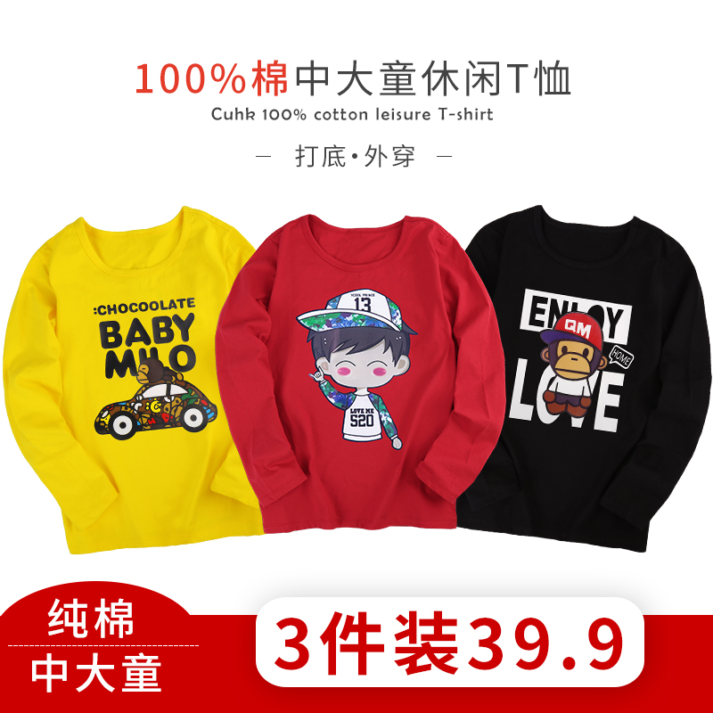 淘宝双11专用-男童春装长袖T恤2019薄款打底衫纯棉中大儿童男孩卡通小学生衣服~满减日更
