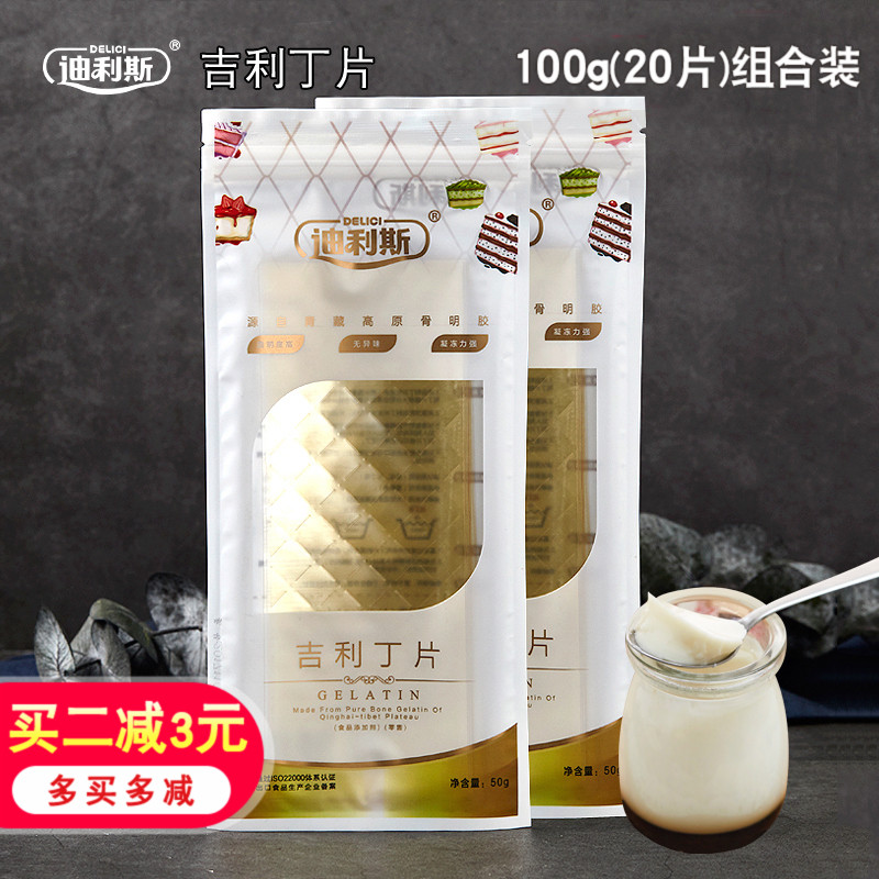 淘宝券~迪利斯吉利丁片50g*2食用鱼胶明胶片慕斯家用布丁果冻粉烘焙材料~满减日更