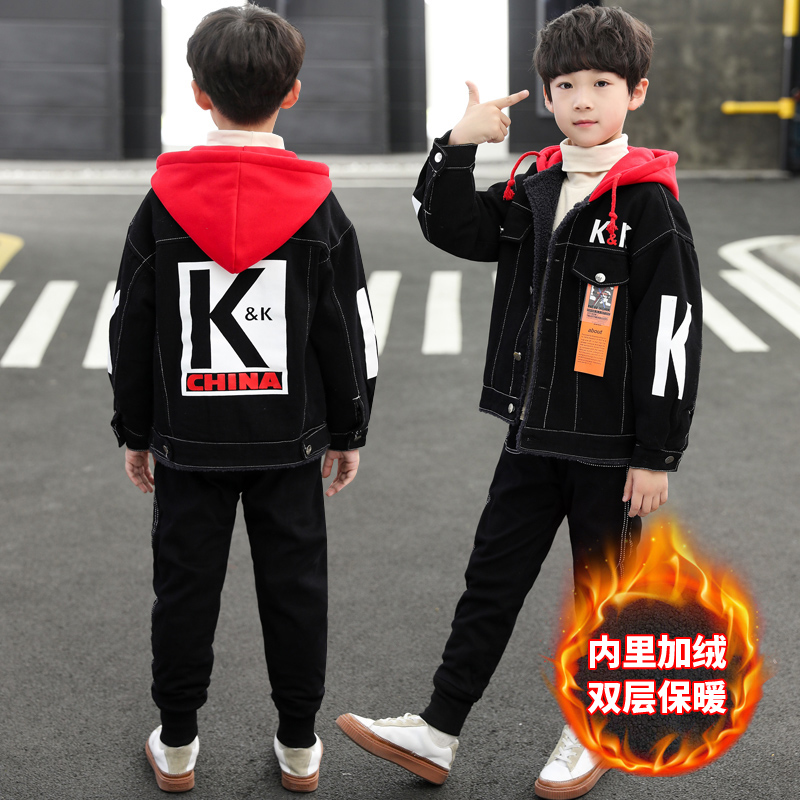 天猫券~童装男童牛仔外套2019新款潮男孩洋气中大童秋冬装加绒加厚儿童装~满减日更
