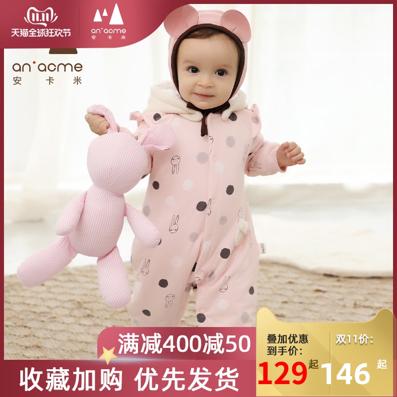 天猫双11专用-安卡米秋冬新生婴儿衣服女宝宝夹棉加厚连体衣外出保暖哈衣爬服装~满减日更
