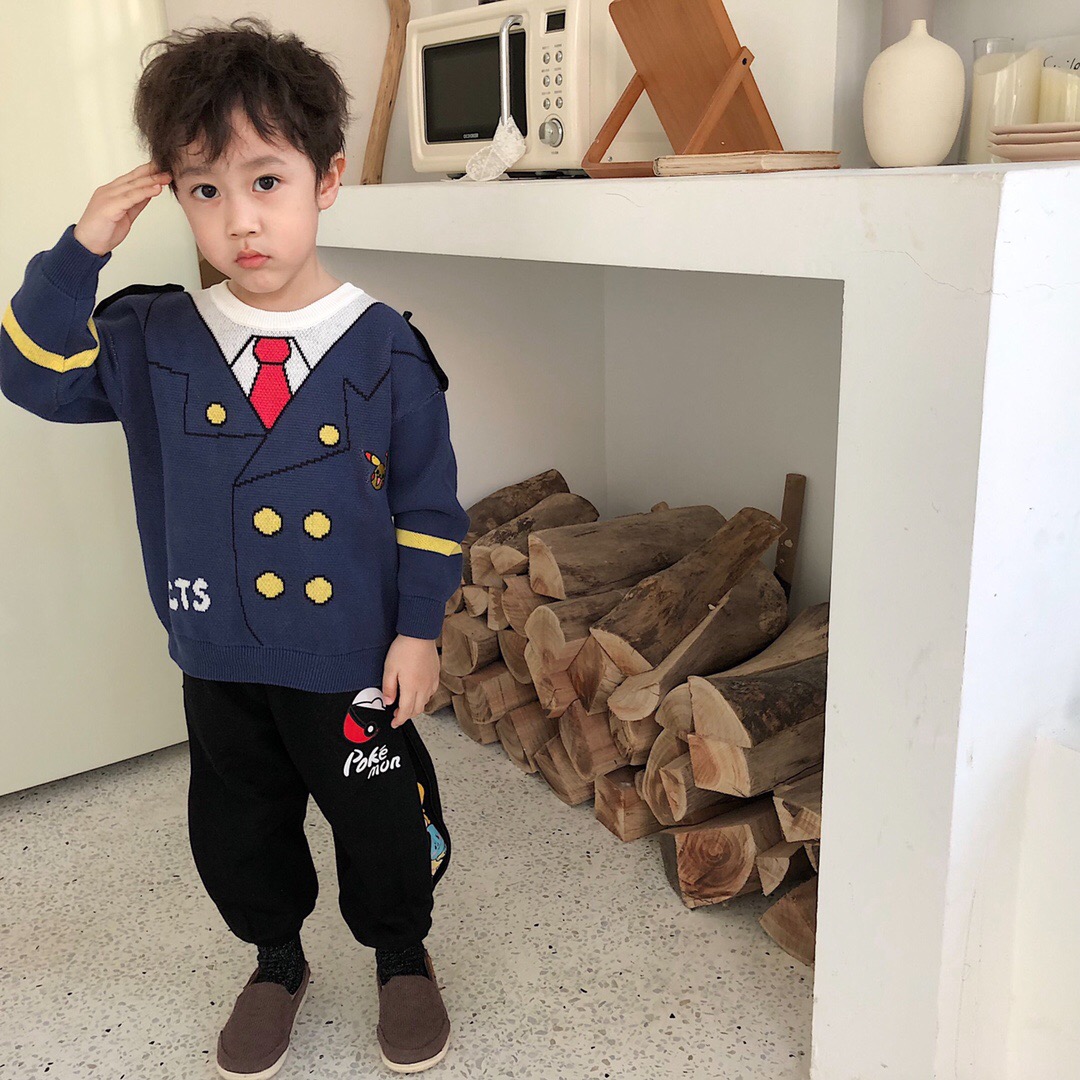 淘宝双11专用-创意个性卡通机长毛衣宝宝套装2019儿童秋季新款INS可爱洋气潮7~满减日更