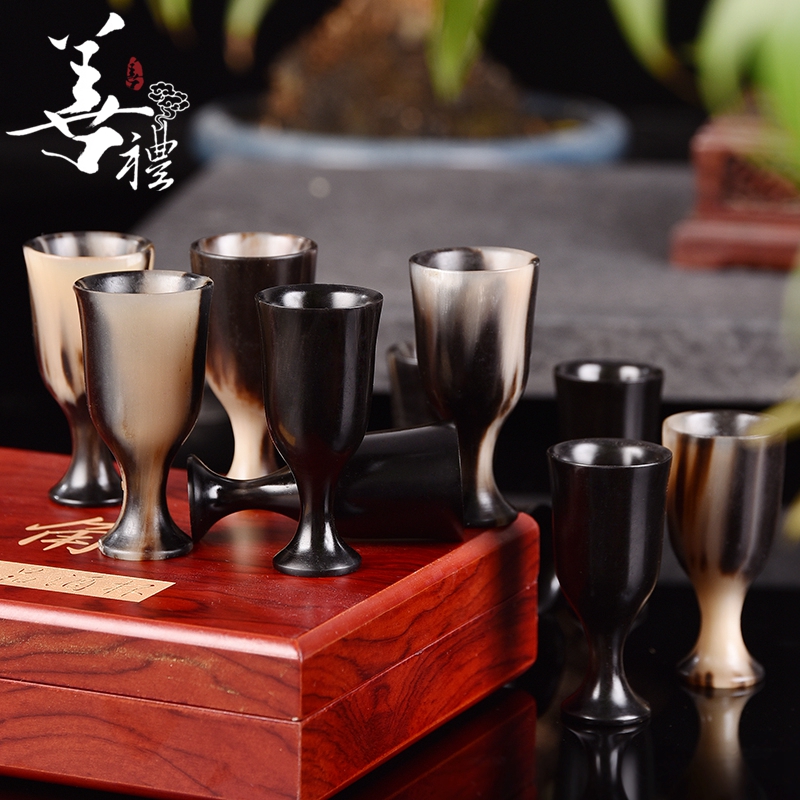 天猫券~善礼天然藏式牛角高脚酒杯 文玩茶碗 非洲牛角茶具酒具 羊角杯子~满减日更