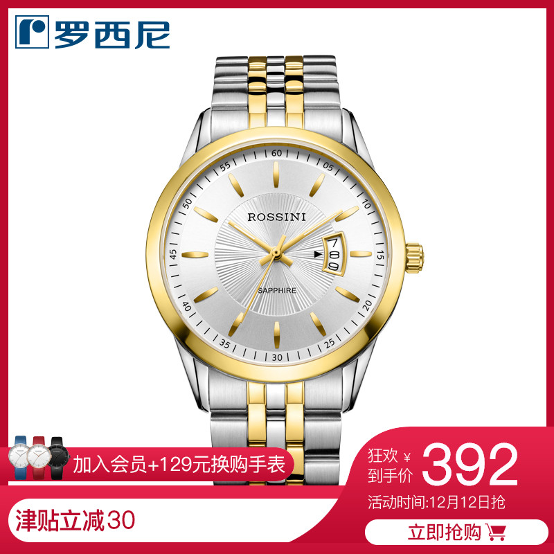 天猫券~罗西尼正品手表男时尚日历防水石英表钢带男士手表514631~满减日更