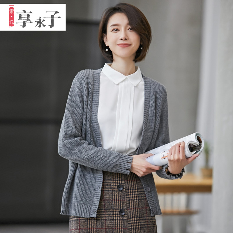 天猫券~享永子2020早春纯棉针织开衫毛衣女针织衫宽松毛衣外套气质外搭潮~满减日更