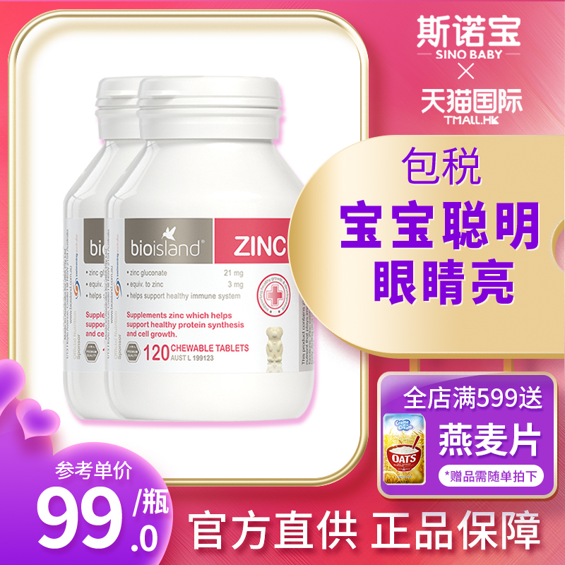 天猫券~澳洲bio island锌 儿童宝宝补锌婴儿改善食欲锌片小熊咀嚼片*2瓶~满减日更