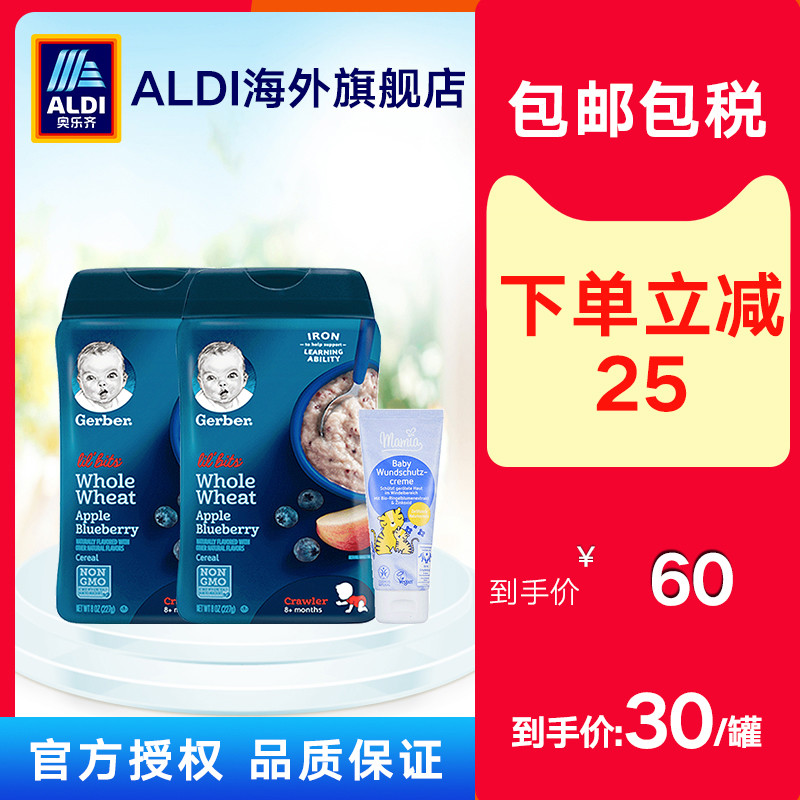 奶粉/辅食/营养品/零食:嘉宝Gerber婴幼儿辅食3段苹果蓝莓全麦米粉*2 +婴儿护臀霜优惠前价格:¥85.00元(人民币)月销售:297件我是土豪,不需要优惠券…… 直接去下单!别拦我!!要不找卖家 ~ 天猫店 @ALDI海外旗舰店 聊聊先吧?再多聊会儿就被抢光啦… 赶紧抢吧!~ ~ ~ ~ ~ ~ ~ ~ ~ ~ ~ ~ ~ ~