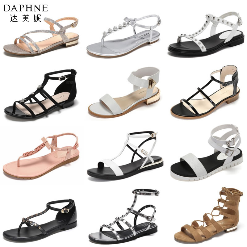 淘宝券~Daphne/达芙妮旗下多款女鞋夏铆钉T型夹脚平底后包女凉鞋~满减日更