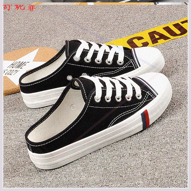 天猫券~黑色白色森系春季大学生帆布鞋白布鞋文艺平跟赖人鞋女一脚蹬百搭~满减日更