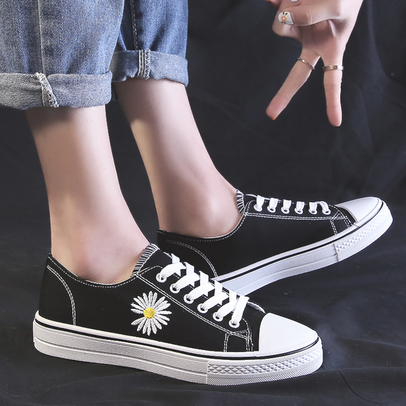 天猫券~2020春夏网红同款小雏菊刺绣帆布鞋(34-40)经典百搭女学生小白鞋~满减日更