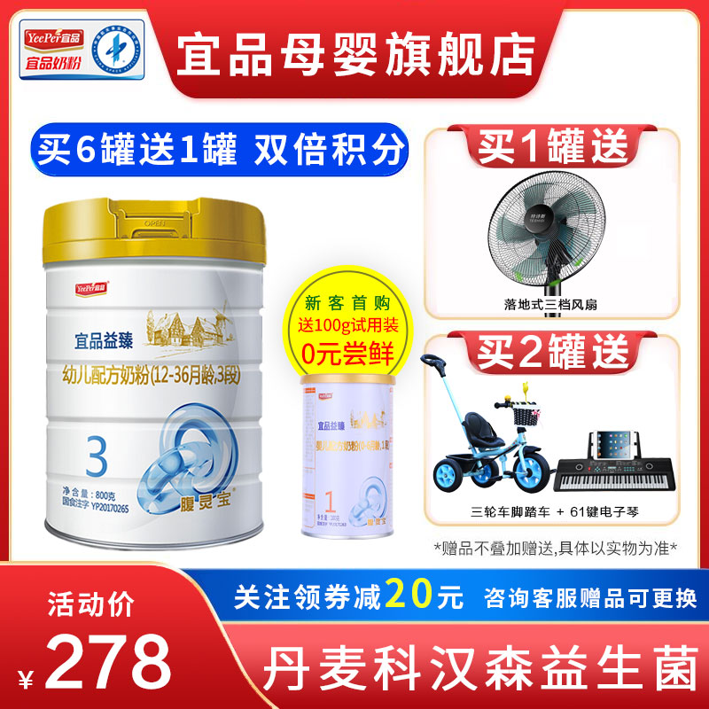 天猫券~【宜品旗舰店】宜品益臻奶粉3段益生菌婴幼儿配方牛奶粉1-3岁800g~满减日更