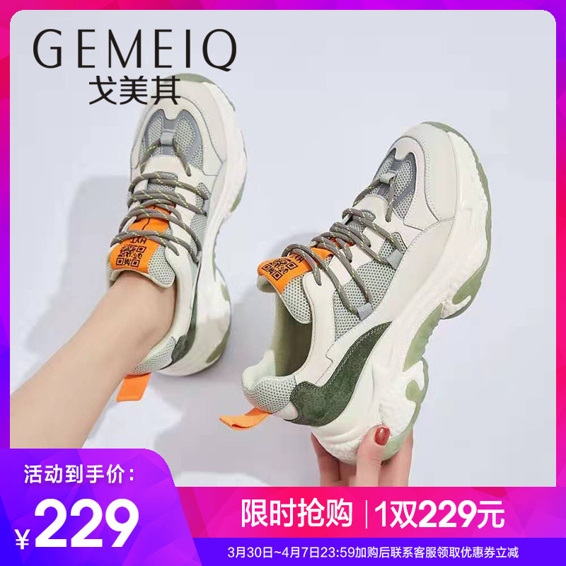 天猫券~戈美其2020春季新款女鞋真皮老爹鞋网红百搭厚底松糕智熏鞋运动鞋~满减日更