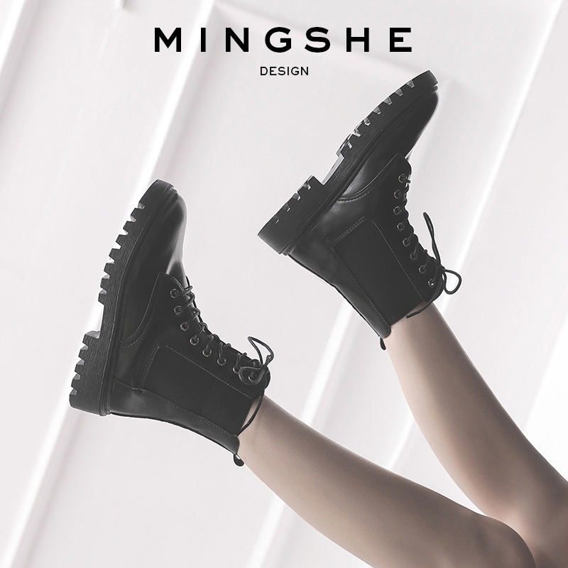 天猫券~黑色马丁靴女2020新款时尚百搭小个子粗跟短靴女秋季网红瘦瘦靴潮~满减日更