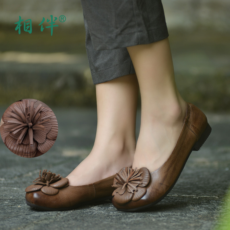 淘宝券~相伴原创真皮女鞋复古文艺民族风单鞋2019春季新款手工平底鞋方头~满减日更