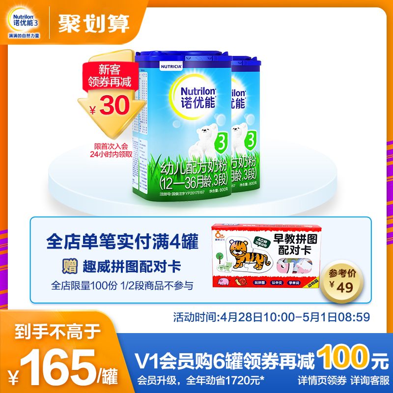 奶粉/辅食/营养品/零食:Nutrilon诺优能奶粉3段幼儿配方2罐装1-3岁 牛栏奶粉官方原罐进口优惠前价格:¥330.00元(人民币)月销售:2480件我是土豪,不需要优惠券…… 直接去下单!别拦我!!要不找卖家 ~ 天猫店 @nutrilon官方旗舰店 聊聊先吧?再多聊会儿就被抢光啦… 赶紧抢吧!~ ~ ~ ~ ~ ~ ~ ~