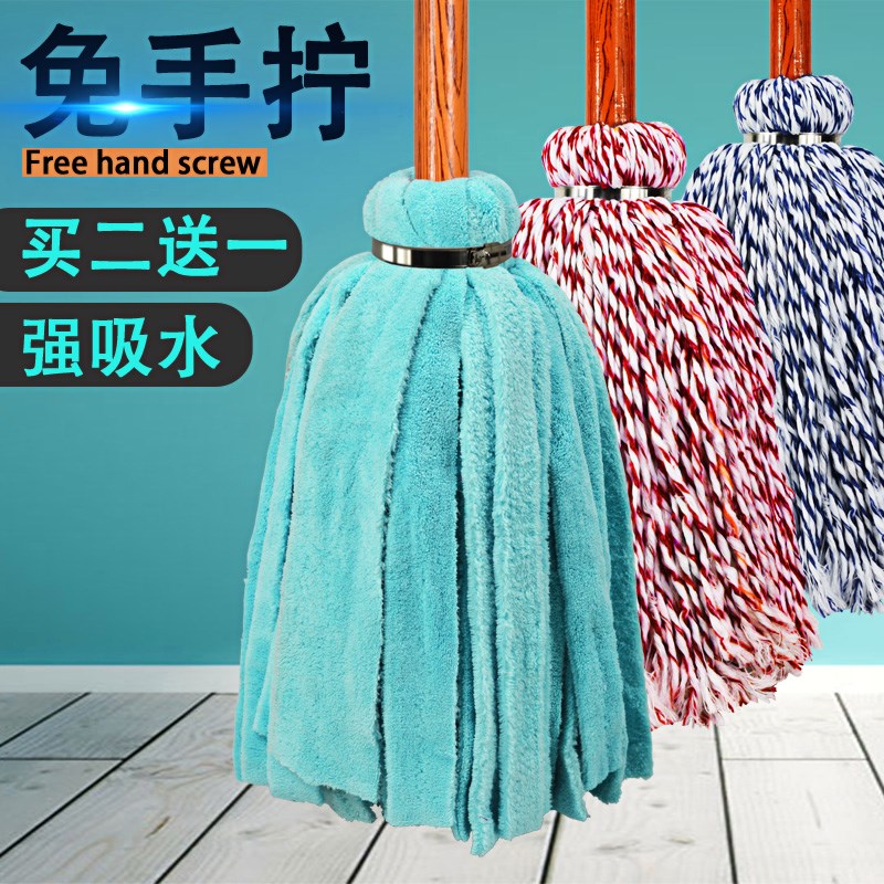 淘宝券~木杆棉线拖把家用酒店布条拖布普通吸水墩布老式木柄圆头纯棉拖把~满减日更