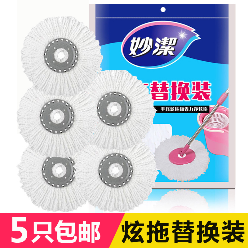 天猫券~妙洁旋转拖把头替换5只墩布家用拖布通用好神拖圆拖把头配件~满减日更