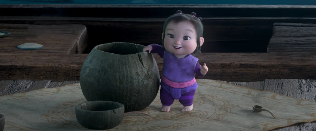 除此之外,整部电影里的部落领袖有男有女,而在主要团队的角色中,也是男女各半,也不计年龄和动物。有牙牙学语的小女孩、龙、猴子、两个耍大刀的公主、魁梧的壮汉、撑船的小伙子。影片传递的概念不但是男女平等,更是人类与自然的平等,与身边那些动物、植物的平等。这样的世界观是非常有高度和深度的,值得一提。
