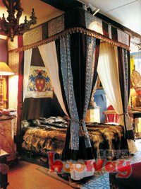 很难道清此类床种属于哪一风情,它糅合了各种风格,引入了中式的围合、欧陆的繁复、泰式的香艳、乡村的随意,所有元素的撞击营造了多国混搭的异域风情,也难怪,当中西文化交融合璧,再没有比这更适合的一张床了。